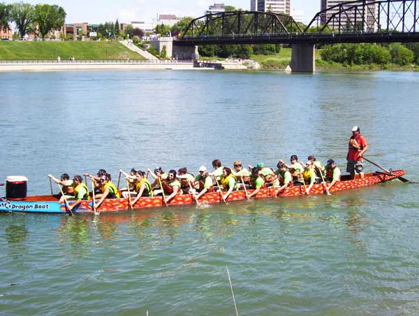 Dragon boating is primarily practiced recreationally rather than competitively in Saskatoon but the city hosted the Saskatoon Dragon Boat Festival on July 23 and 24. The festival included 35 community teams to raise money for the Heart and Stroke Foundation of Saskatchewan.